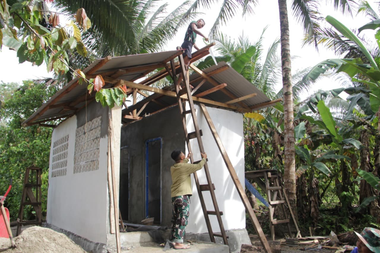 Tolitoli – Tim Satgas TMMD ke-127 dari Kodim 1305/Buol Tolitoli sedang mempercepat pembangunan fasilitas Mandi, Cuci, dan Kakus (MCK) di