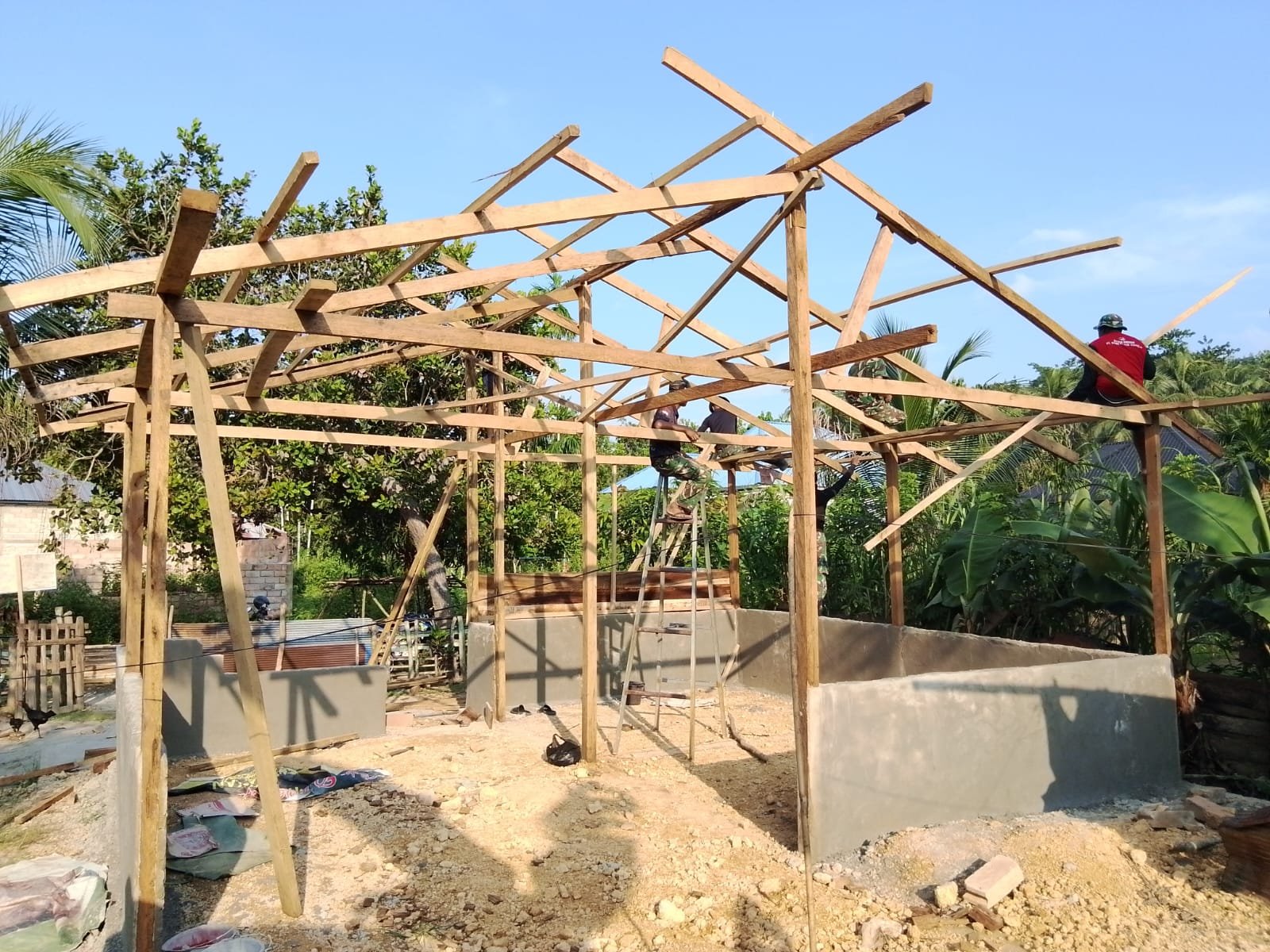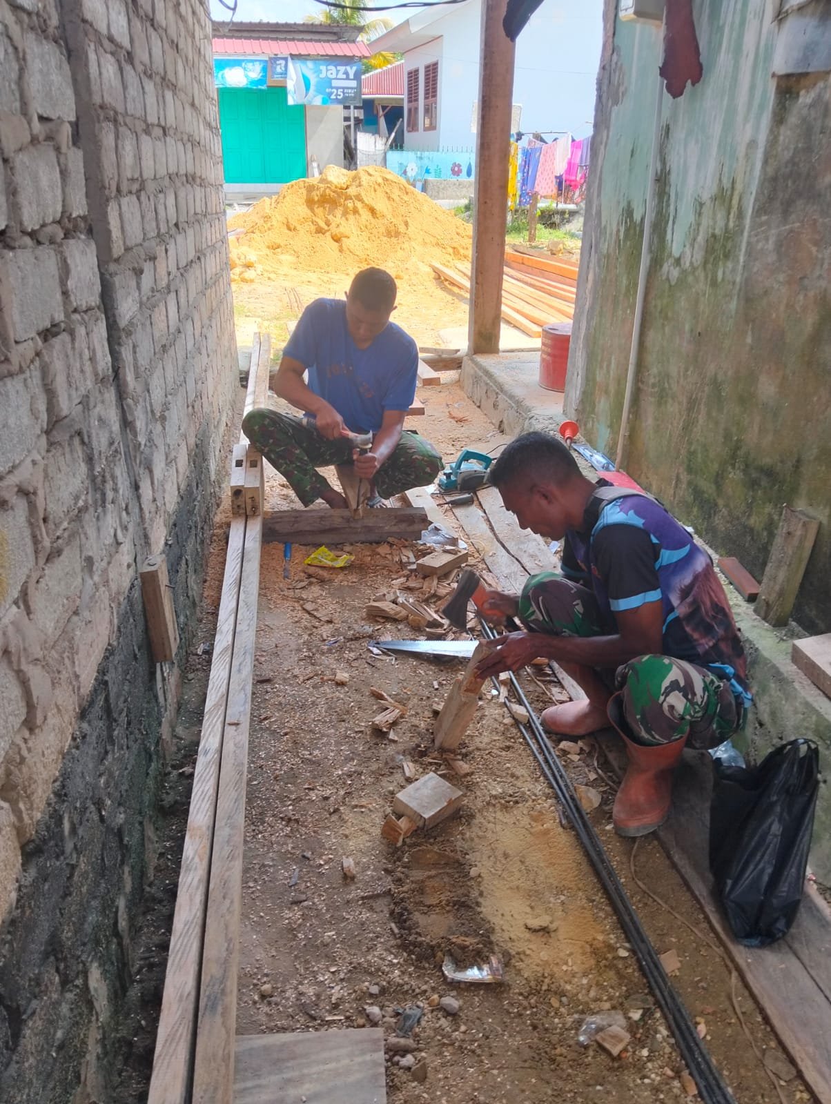 Kebersamaan TNI dan Warga Warnai Pembangunan Rumah Layak di Petoaha