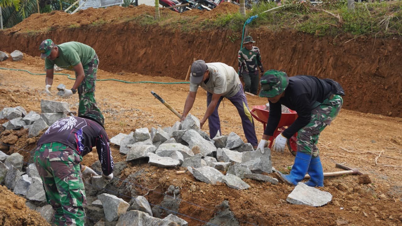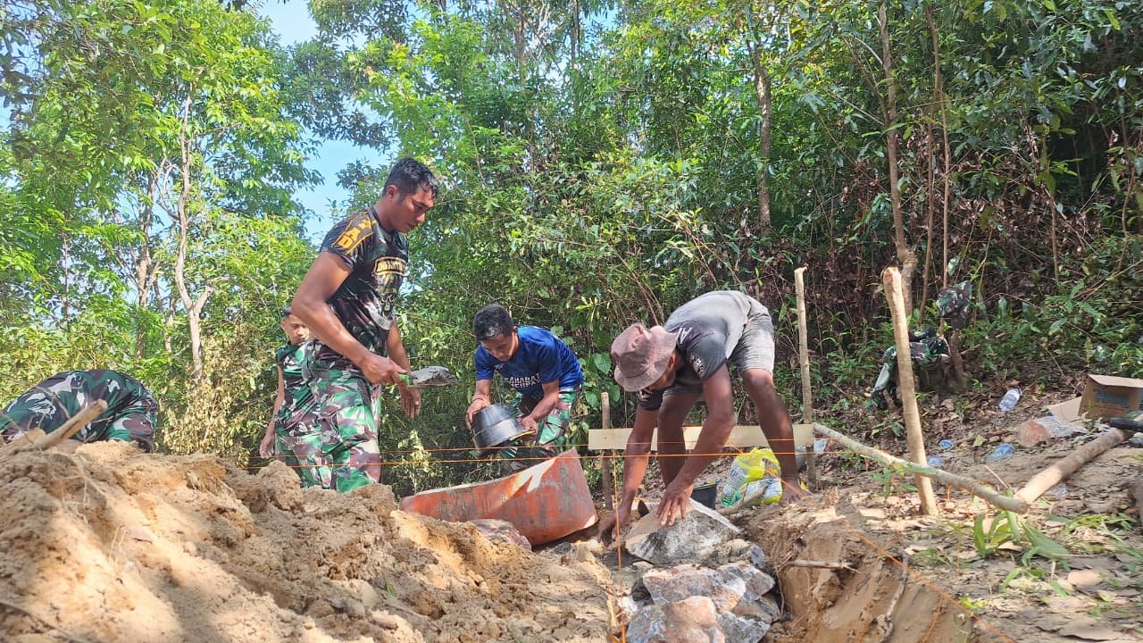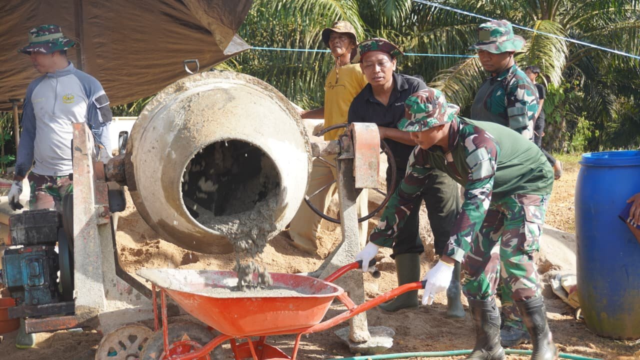 Kotawaringin Timur – TNI Manunggal Membangun Desa (TMMD) Reguler ke-127 Kodim 1015/Sampit menunjukkan kepedulian mereka dengan membantu warga dalam mendirikan