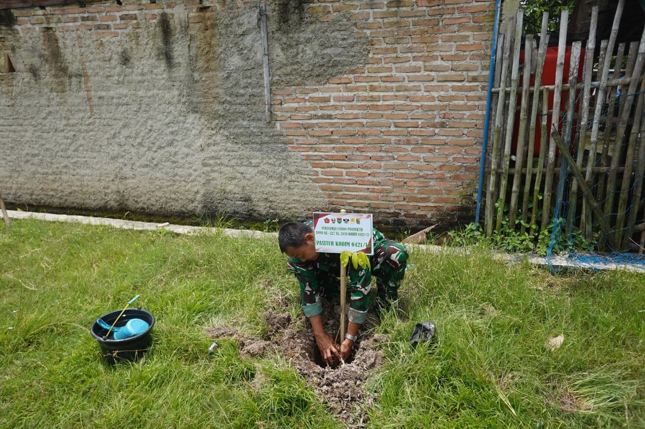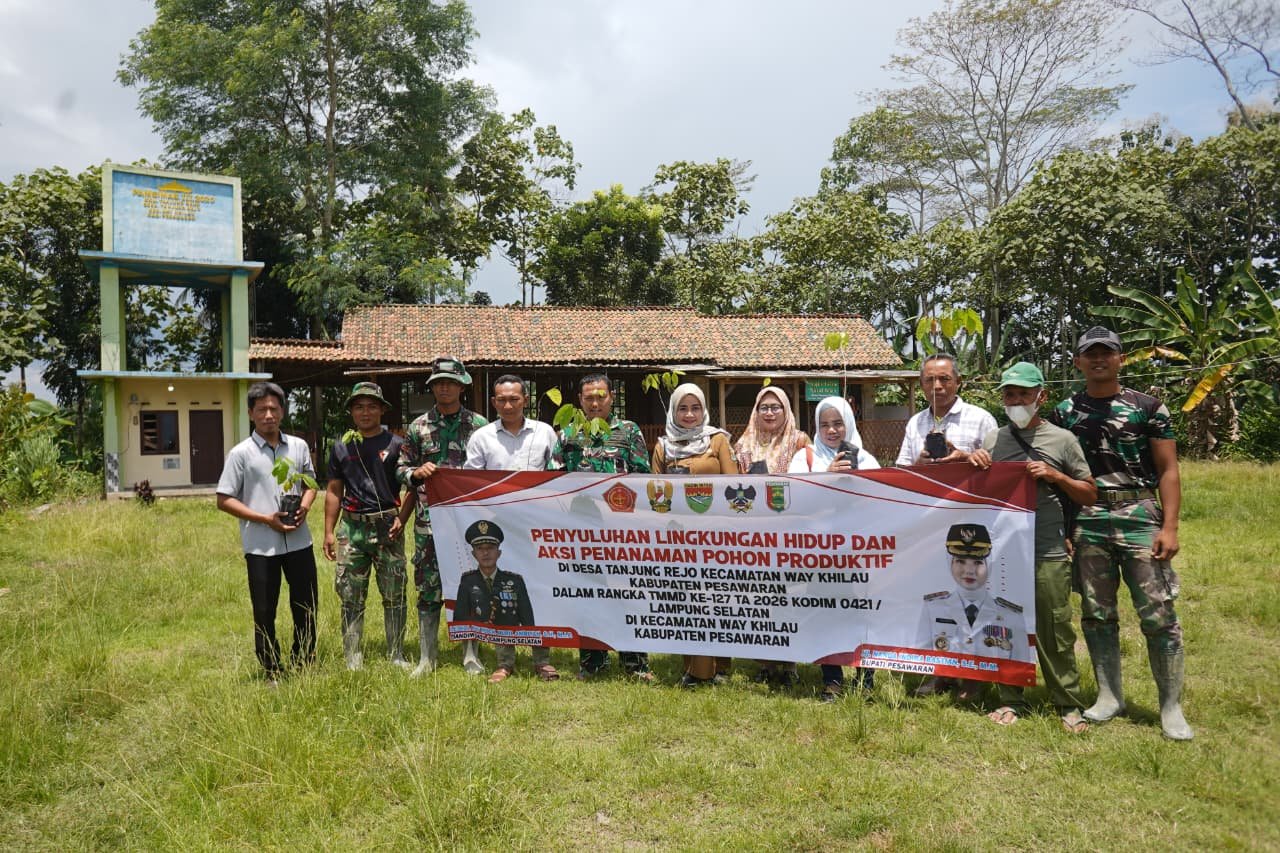 Pesawaran — Kodim 0421/Lampung Selatan bersama Dinas Lingkungan Hidup Kabupaten Pesawaran melaksanakan kegiatan penanaman pohon sebagai bentuk kepedulian terhadap kelestarian