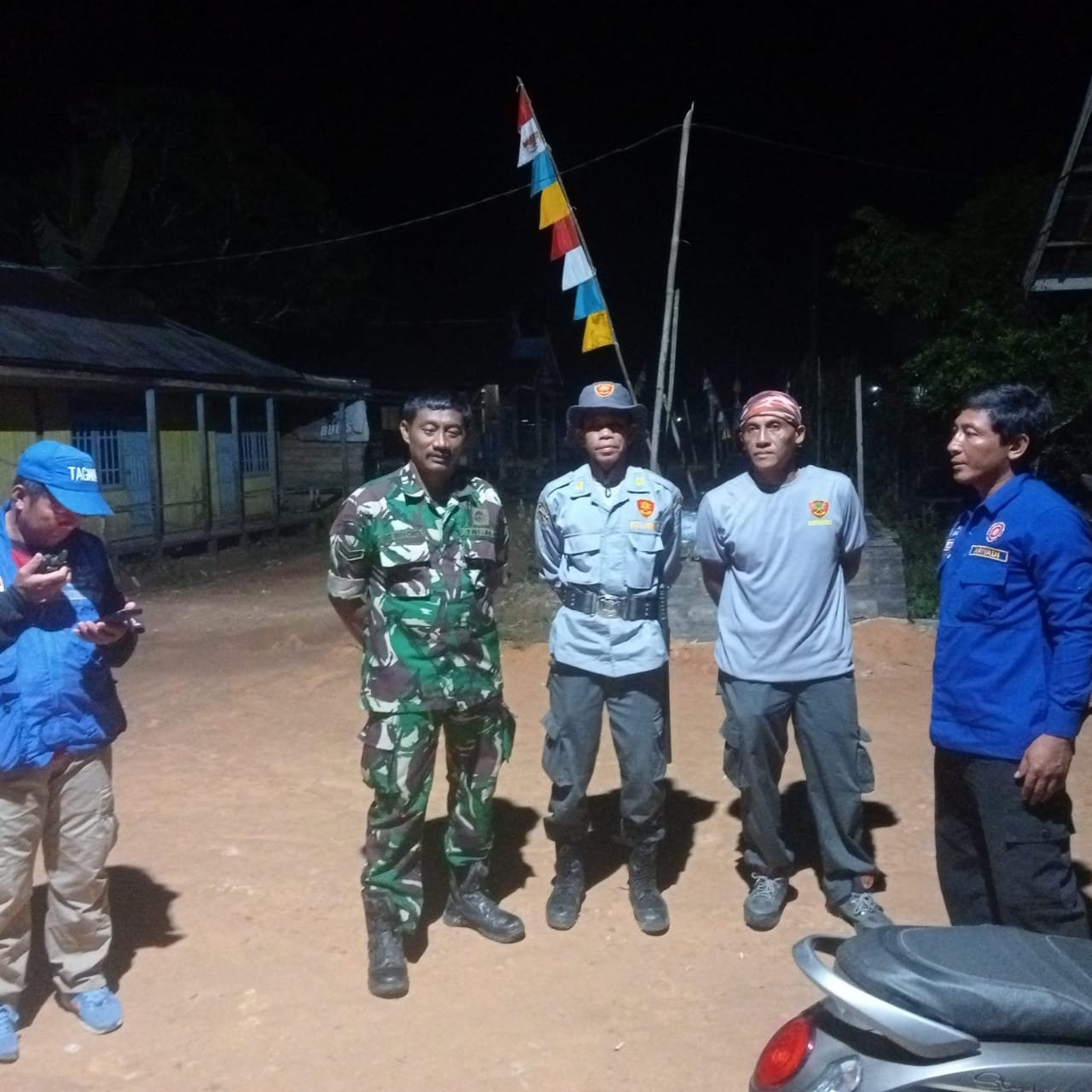 Cegah Gangguan Kamtibmas, Sertu Sri Wiyono Bersama Linmas Gelar Patroli Malam di Desa Batu Kotam