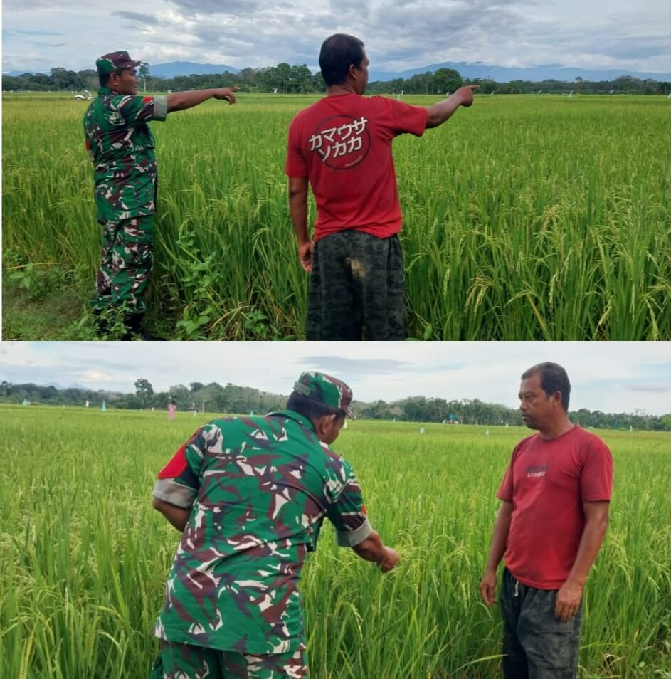 Dalam Rangka Mendukung Ketahanan Pangan, Babinsa Posramil 05/PC Mendampingi Petani Mengecek Perkembangan Padi