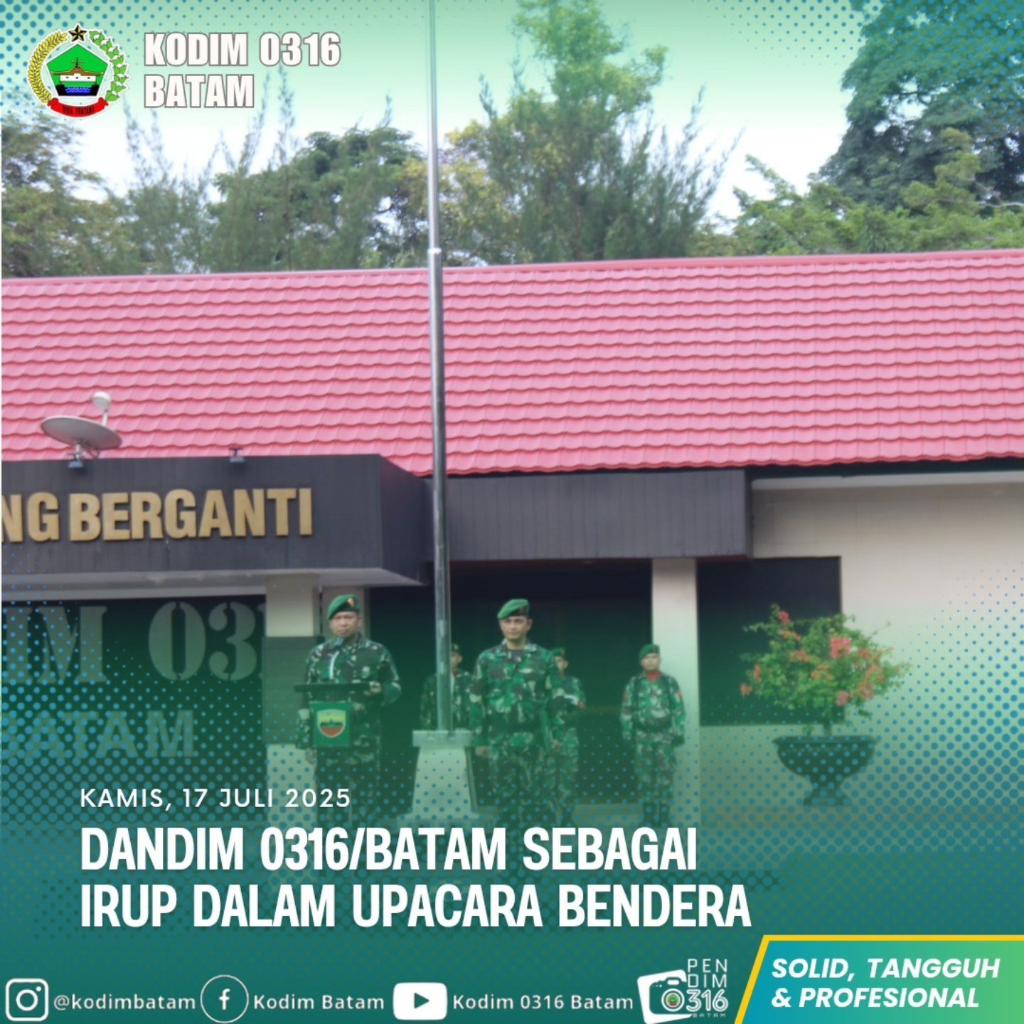 Upacara berlangsung dengan khidmat dan diikuti oleh seluruh personel TNI di lingkungan Kodim 0316/Batam.