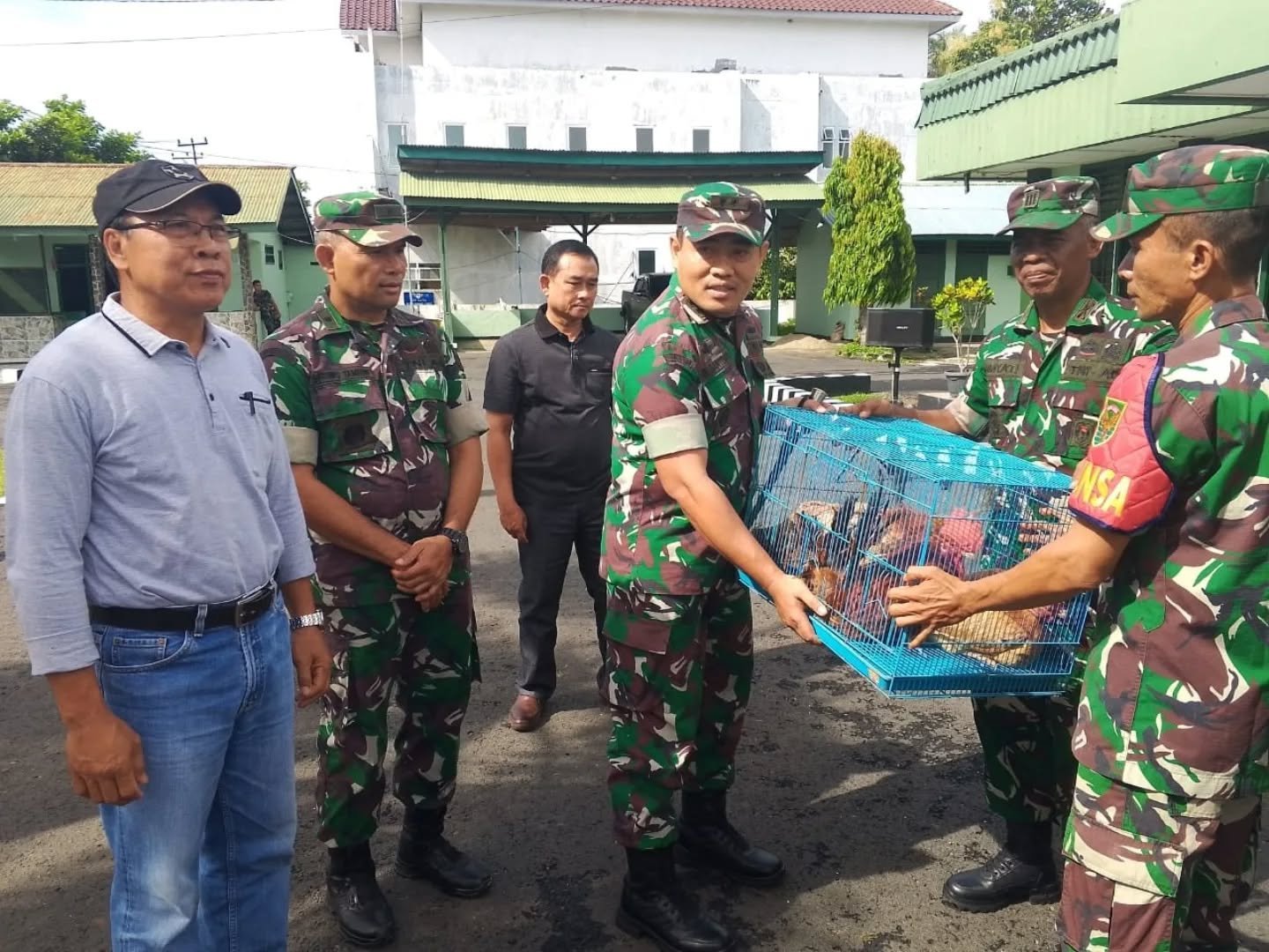 Manna – Komandan Kodim 0408/BD Letnan Kolonel Czi Bambang Santoso, SH.M,SDS menyerahkan ayam petelur elba dan mesin tetas dalam rangka mendukung program makan bergizi nasional bertempat di Makodim 0408/BS Jalan Veteran Kelurahan Padang Kapuk Kecamatan Kota Manna Kabupaten Bengkulu Selatan,Jumat (24/1/25)