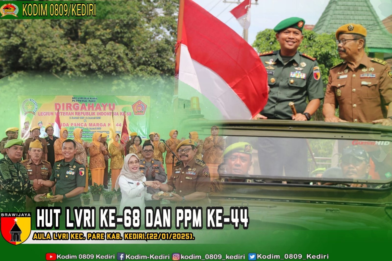 Kediri — Letkol Inf Ragil Jaka Utama S. Hub. Int., M.H., Dandim 0809/Kediri, menghadiri acara Ziarah dan Tasyakuran peringatan Hari Ulang Tahun Legiun Veteran Republik Indonesia (LVRI) ke-68 TMP Canda Bhirawa – Pare dan Gedung Serbaguna Jl. Puncak Jaya no. 12 Kel. Pare Kec. Pare Kab. Kediri.Selasa (21/1/2025).