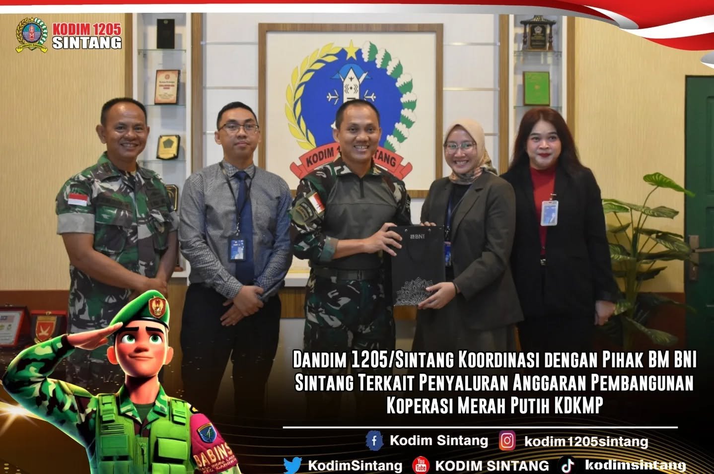Dandim 1205/Sintang Koordinasi dengan Pihak BM BNI Sintang Terkait Penyaluran Anggaran Pembangunan Koperasi Merah Putih KDKMP