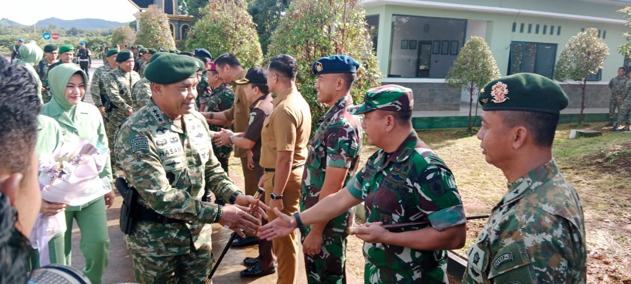 Dandim 1409/Gowa hadiri Kunker Panglima Komando Cadangan Strategis Angkatan Darat (Pangkostrad) Letjen TNI Muhammad Hasan beserta rombongan di Mako Divisi Infanteri 3 Kostrad Desa Sokkolia Kec. Bontomarannu Kab. Gowa. Senin, (16/12/2024)