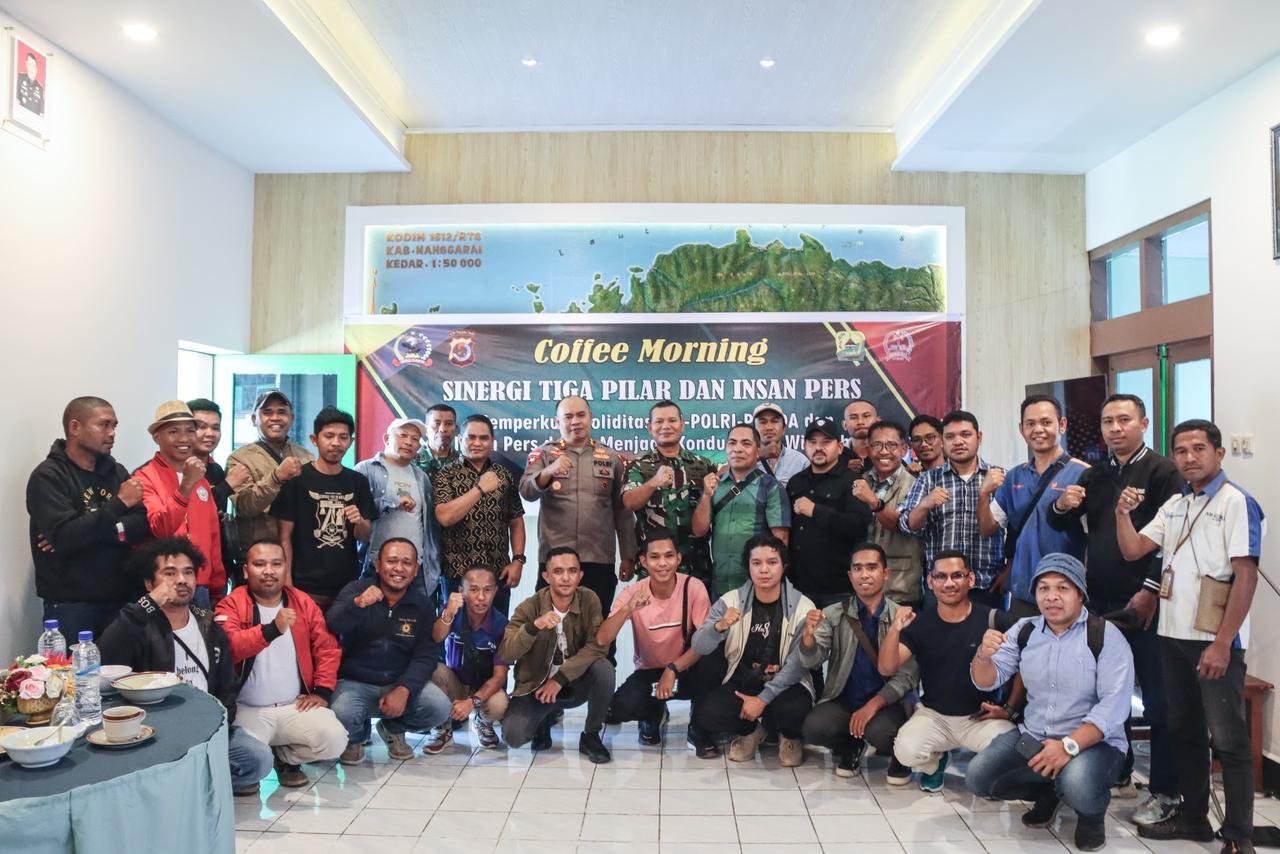 Ruteng – Keakraban menjadi menu utama di Aula Makodim 1612/Manggarai pada Rabu (2/10/2025). Jauh dari kesan formal, kegiatan Coffee Morning Sinergi Tiga Pilar dan Insan Pers ini mengumpulkan empat elemen kunci Manggarai TNI, Polri, Pemerintah Daerah (Pemda), dan media massa dalam satu meja untuk mengukuhkan tekad bersama menjaga Manggarai tetap kondusif.