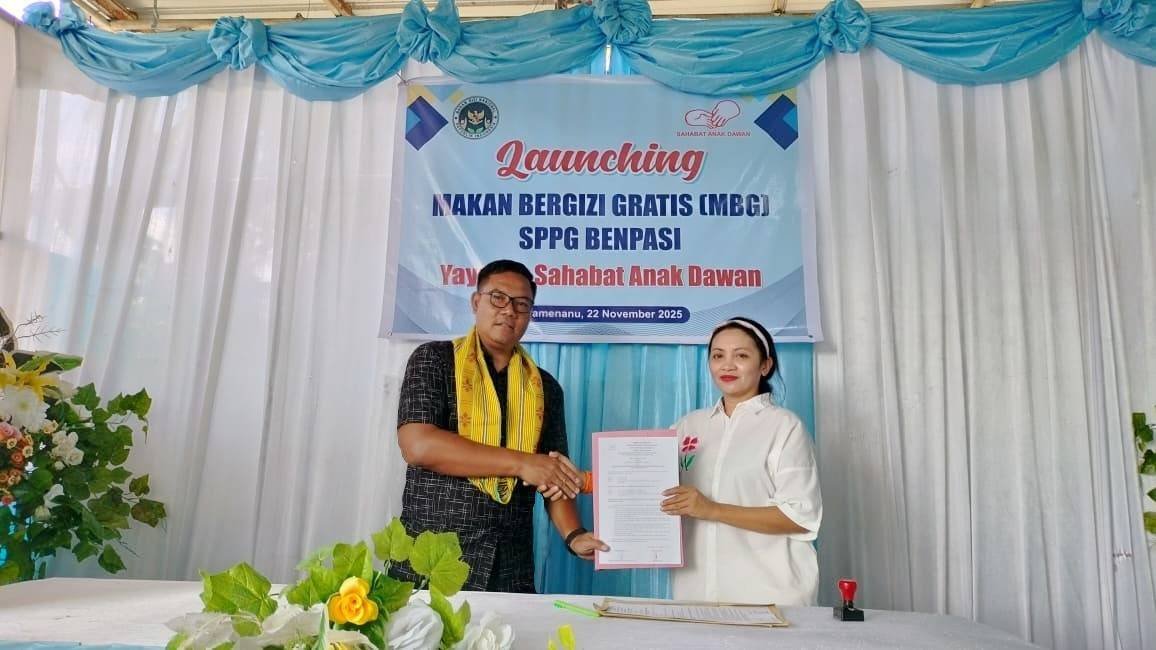 Hadir dalam kesempatan tersebut Camat Kota Kefamenanu Melkianus Kono, S.STP., Ketua Yayasan Sahabat Anak Dawan, Bhabinkamtibmas Kelurahan Benpasi, tokoh masyarakat, serta tenaga kerja Yayasan Sahabat Anak Dawan. Kehadiran unsur pemerintah dan masyarakat menunjukkan dukungan penuh terhadap keberlanjutan program MBG yang menjadi perhatian serius pemerintah pusat dan daerah.