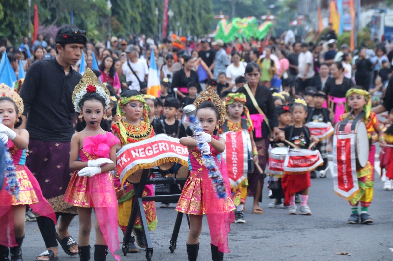 Adapun rangkaian kegiatan diwarnai dengan berbagai pertunjukkan antara lain tari kontemporer dari SLB Negeri 1 Klungkung berjudul “Lelakut”, Parade Marching Band dari TK Negeri Klungkung, Parade Barong Sai dan Barong Ket dari Yayasan Tulus Hati Vihara Dharma Ratna, Klungkung dan Parade Barong Bangkung bertema “Tri Semaya Mukti” dari Sanggar Wimala Kerti, Desa Gunaksa, Dawan, Klungkung serta Tari Barong Ket bertema Tepuk Asepan