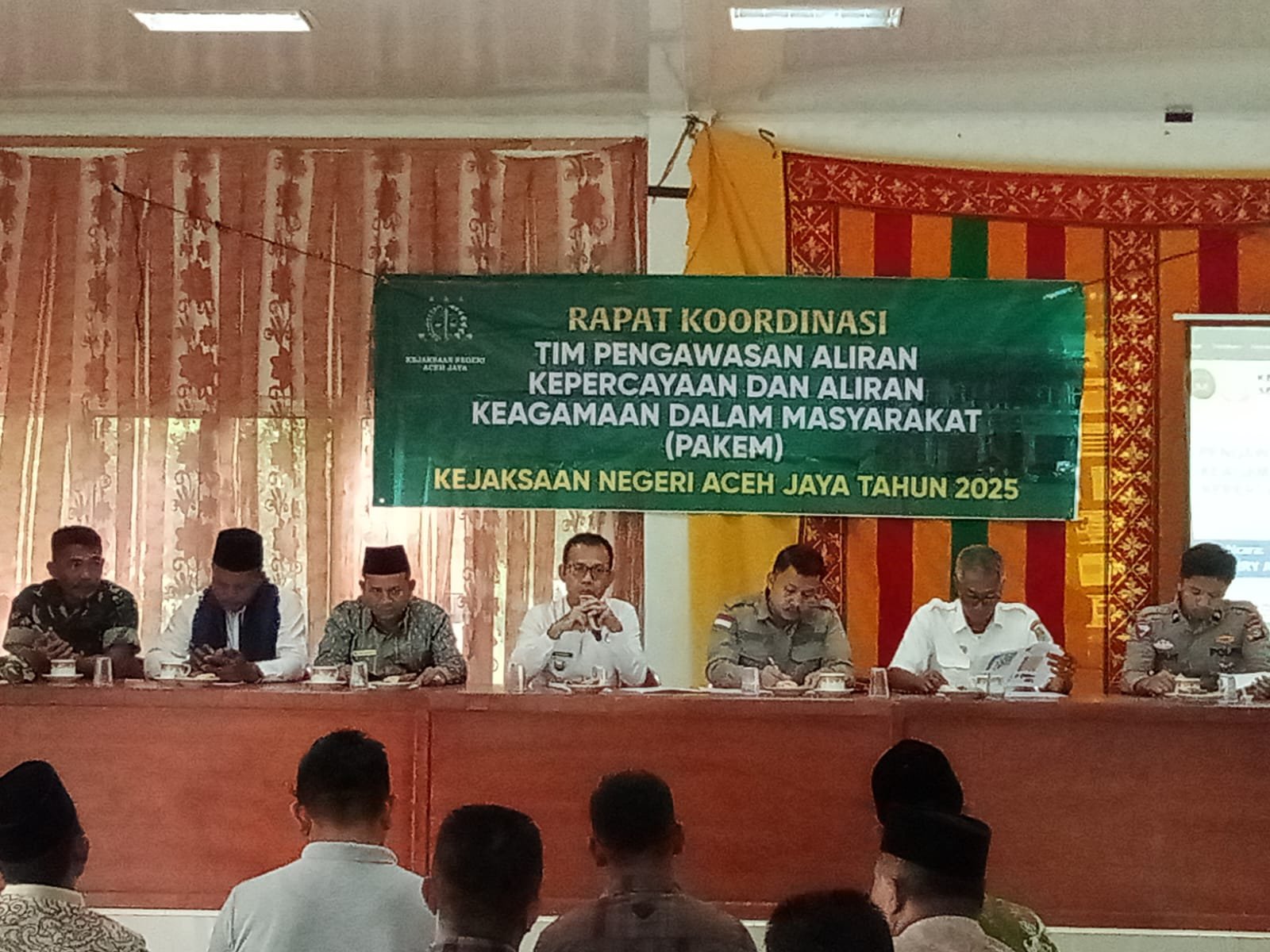 ACEH JAYA – Danposramil Pasie Raya Kodim 0114/Aceh Jaya, Serka Zulkifli Tanjung, menghadiri kegiatan Rapat Koordinasi Tim Pengawasan Aliran Kepercayaan dan Aliran Keagamaan Dalam Masyarakat (PAKEM) Tahun 2025 yang diselenggarakan oleh Kejaksaan Negeri Aceh Jaya di Aula Kantor Camat Pasie Raya, Desa Tuwi Kareng, Rabu (15/10/2025).