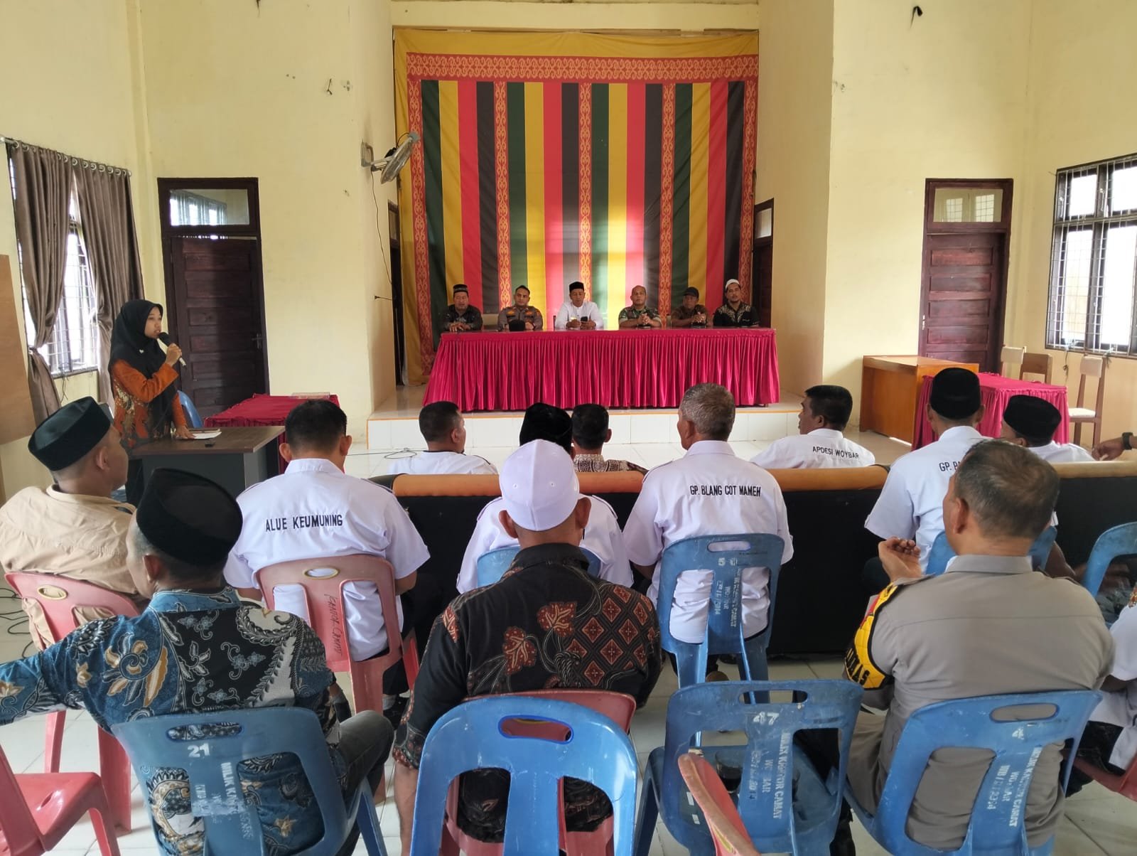 Kegiatan tersebut dihadiri oleh unsur Forum Komunikasi Pimpinan Kecamatan (Forkopimcam) Woyla Barat, antara lain Camat Woyla Barat Kamaruddin, SE beserta staf, Kapolsek Woyla Barat Iptu Munandar, SH, Kepala Puskesmas Woyla Safrida, S.Km, Ketua BPP Woyla Barat Samsunar, Ketua MAA Zakaria, Kepala KUA Woyla Barat Azhar, S.Kom, serta seluruh Keuchik se-Kecamatan Woyla Barat.