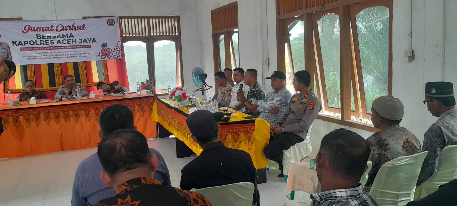 ACEH JAYA – Kapolres Aceh Jaya AKBP Zulfa Renaldo, S.I.K., M.Si., melaksanakan kegiatan Jumat Curhat bersama masyarakat Kecamatan Setia Bakti yang berlangsung di Aula Desa Lhok Bot, Kamis (6/11/2025). Kegiatan ini menjadi wadah komunikasi langsung antara aparat kepolisian, pemerintah daerah, dan masyarakat dalam menyampaikan aspirasi serta membahas berbagai persoalan yang dihadapi warga.