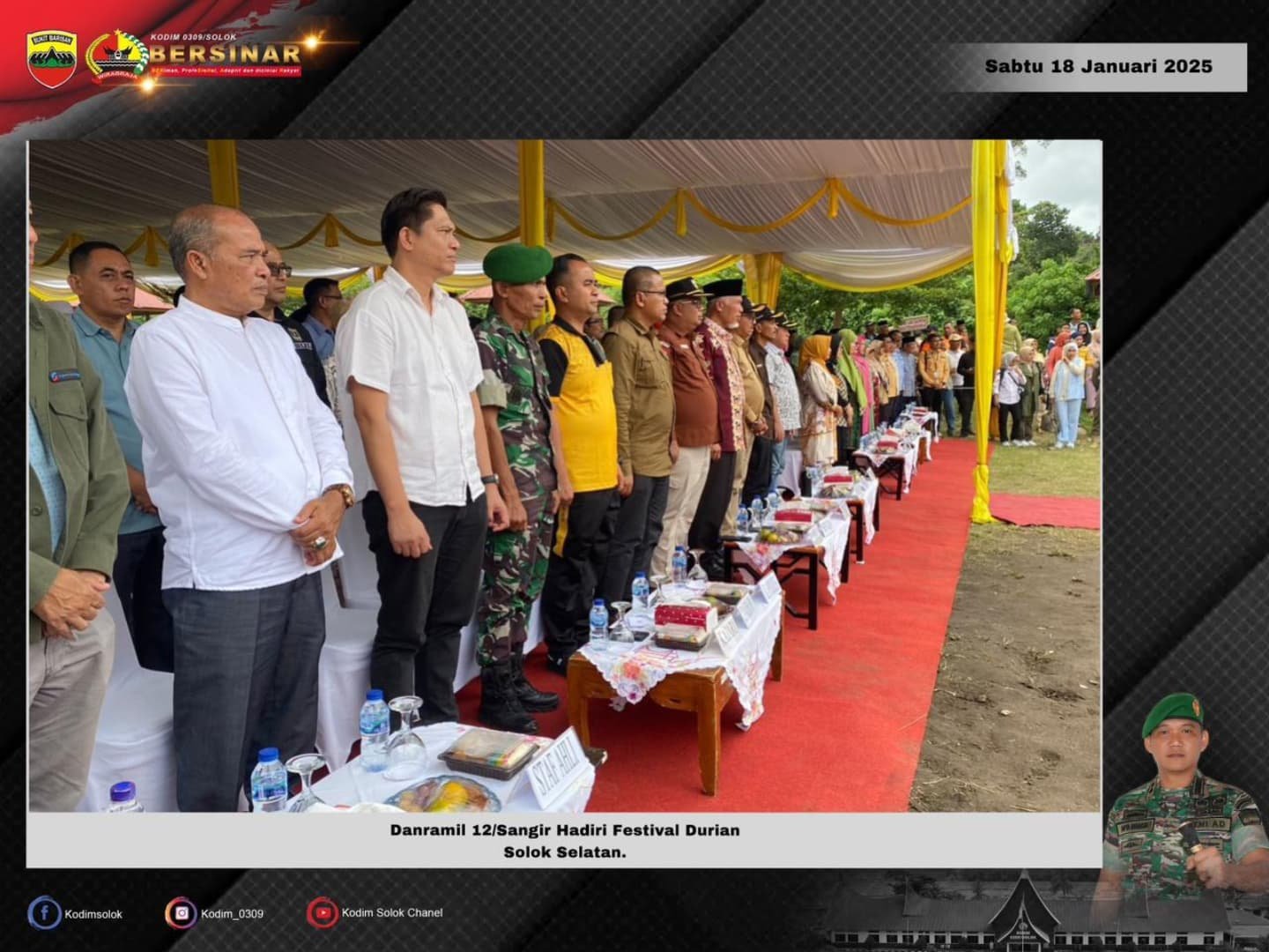 Danramil 12/Sangir Kodim 0309/Solok Kapten Inf Walter Nadeak hadiri Festival Durian Solok Selatan yang ke-4 di Pulau Mutiara, Jorong Manggiu, Nagari Lubuk Gadang Utara, Kecamatan Sangir, Kabupaten Solok Selatan, Sabtu 18 Januari 2025.