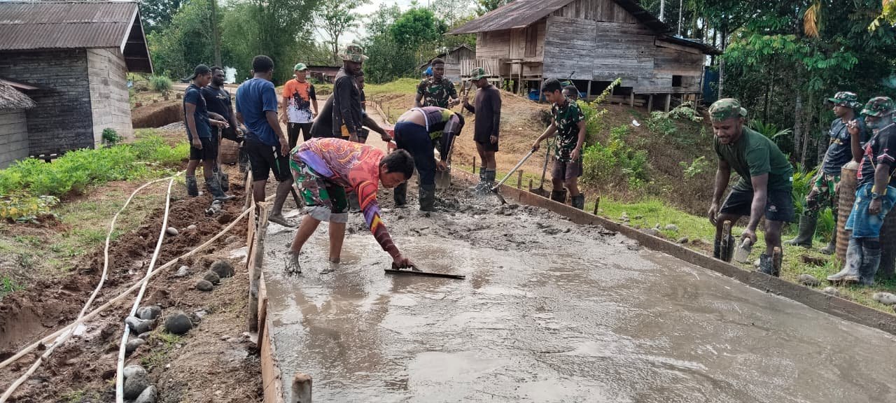Kegiatan pengecoran jalan ini diharapkan dapat membuka akses transportasi yang lebih baik bagi warga Waropko, sekaligus mendukung aktivitas ekonomi dan sosial masyarakat di wilayah terpencil tersebut.
