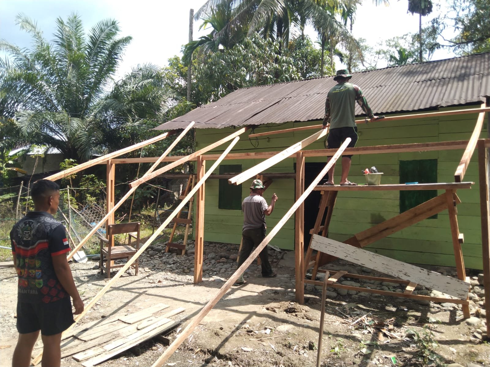 NAGAN RAYA – Perlahan namun pasti, perubahan mulai terlihat pada rumah kayu yang menjadi sasaran perehaban RTLH dalam program TMMD Ke-127 Kodim 0116/Nagan Raya. Bagian teras yang sebelumnya sederhana kini dibangun ulang dengan rangka baru yang lebih kokoh.