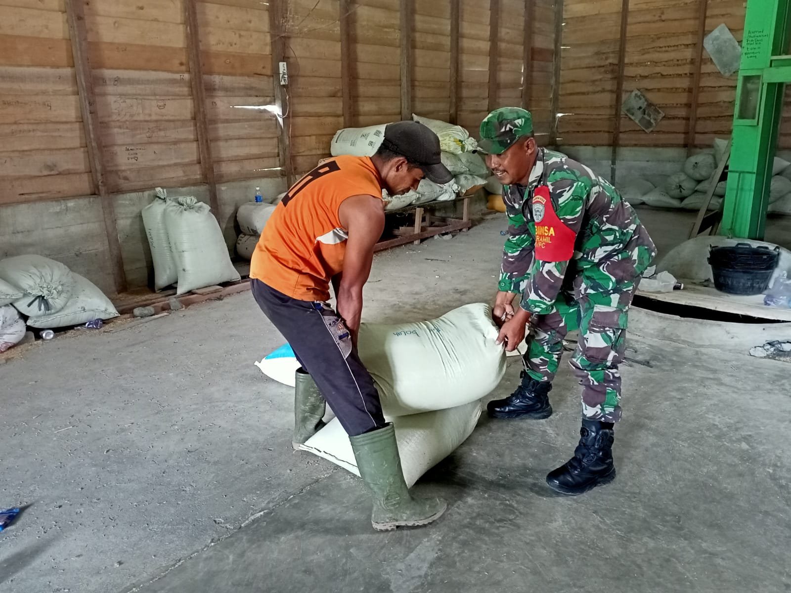 Dengan Semangat Kemanunggalan, Babinsa Posramil 05/PC Melaksanakan Pengecekan terhadap Padi yang sedang diproses di Kilang Padi