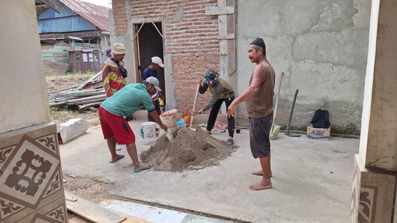 Dengan Sistem Gotong Royong Bersama Warga, Satgas TMMD 125 Kodim 1417/Kdi Rehap MCK Mushola