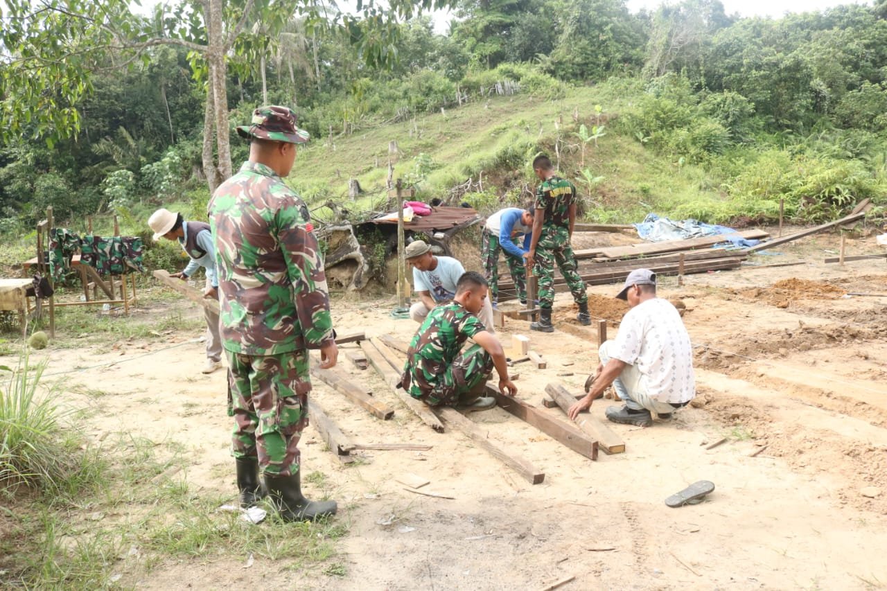 Di Bawah Terik, Kodim 0909/Kutai Timur Bangun Rumah Rahman Jadi “Istana Mungil”