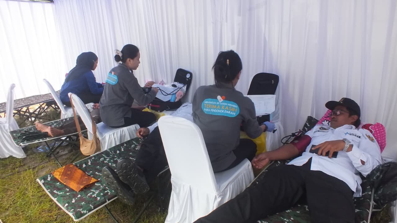 Donor Darah: Bentuk Kepedulian dalam TMMD Ke-128 Kodim 1014/Pbn