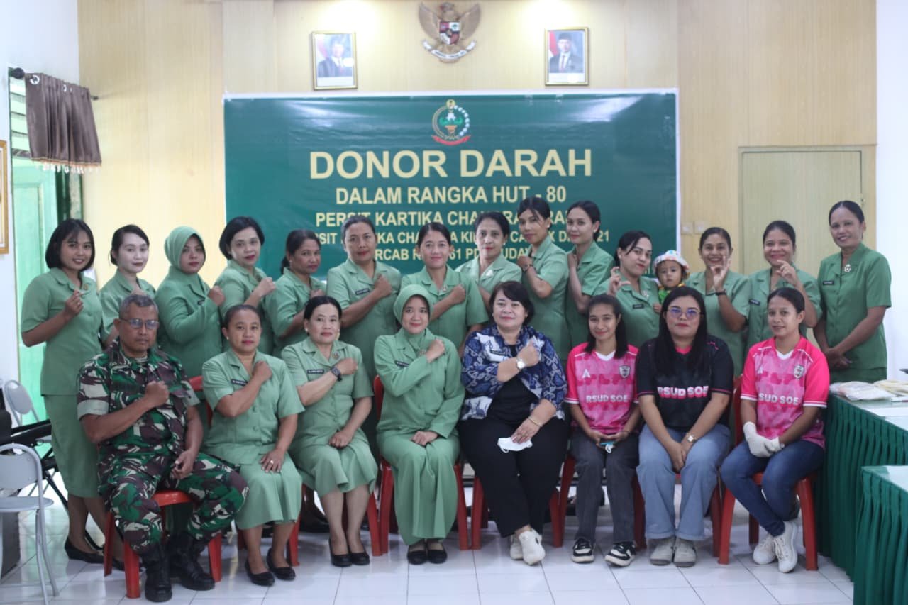 Timor Tengah Selatan – Dalam rangka memperingati Hari Ulang Tahun (HUT) Korem 161/Wira Sakti yang ke-65 dan HUT Persit Kartika Chandra Kirana (KCK) ke-80, Kodim 1621/Timor Tengah Selatan (TTS) menyelenggarakan kegiatan donor darah di Aula Makodim 1621/TTS, Jalan Gajah Mada, Kelurahan Cendana, Kabupaten TTS pada hari Kamis, 5 Februari 2026.