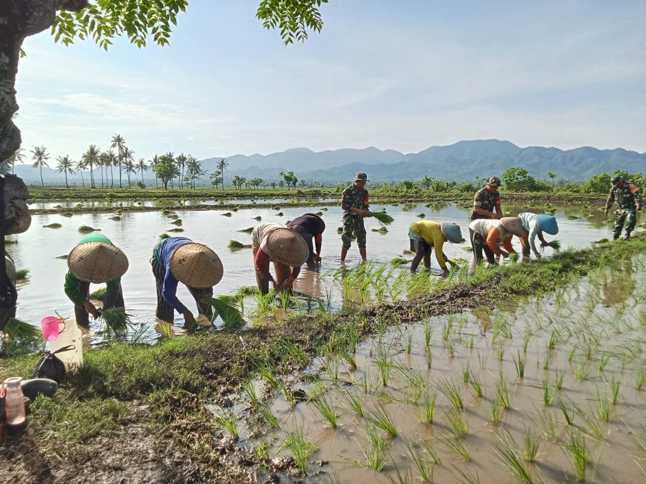 Dukung Ketahanan Pangan Nasional Babinsa Koramil 1608-07/Monta Laksanakan Pendampingan Tanam Padi di Desa Waro