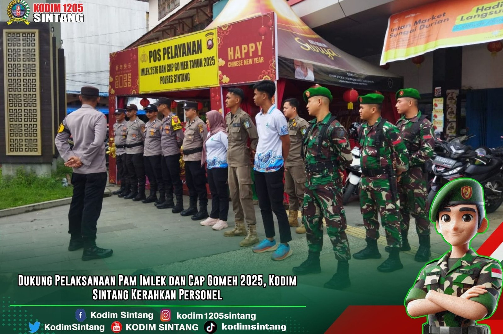 Sintang – Dalam rangka mendukung kelancaran dan keamanan pelaksanaan perayaan Tahun Baru Imlek 2576 dan Cap Gomeh 2025, Komando Distrik Militer (Kodim) 1205/Sintang mengerahkan personel untuk turut serta dalam pengamanan dan pengawasan selama kegiatan, Selasa (28/01/2025).