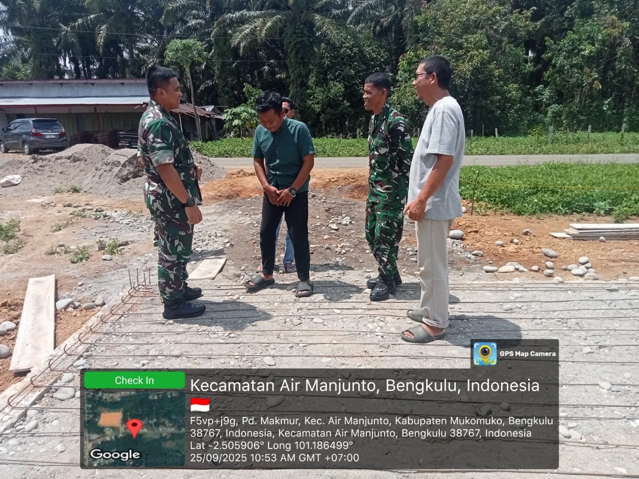 Dalam pengecekan, Dandim 0428/Mukomuko nampak didampingi oleh Supervisor dan Kepala tukang MBG melihat setiap detail bangunan guna dilakukan sesuai standar bangunan SPPG.