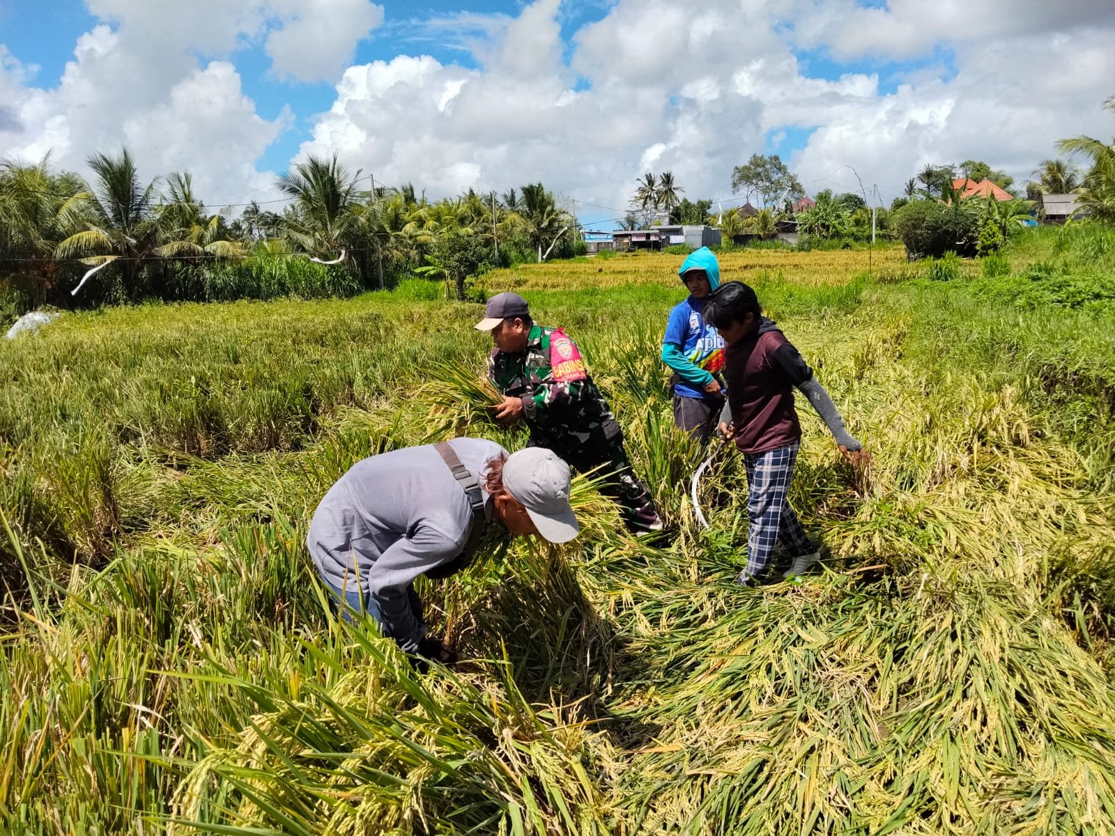 Dukungan TNI dalam Panen Padi: Babinsa Getakan Dampingi Petani di Subak Delod