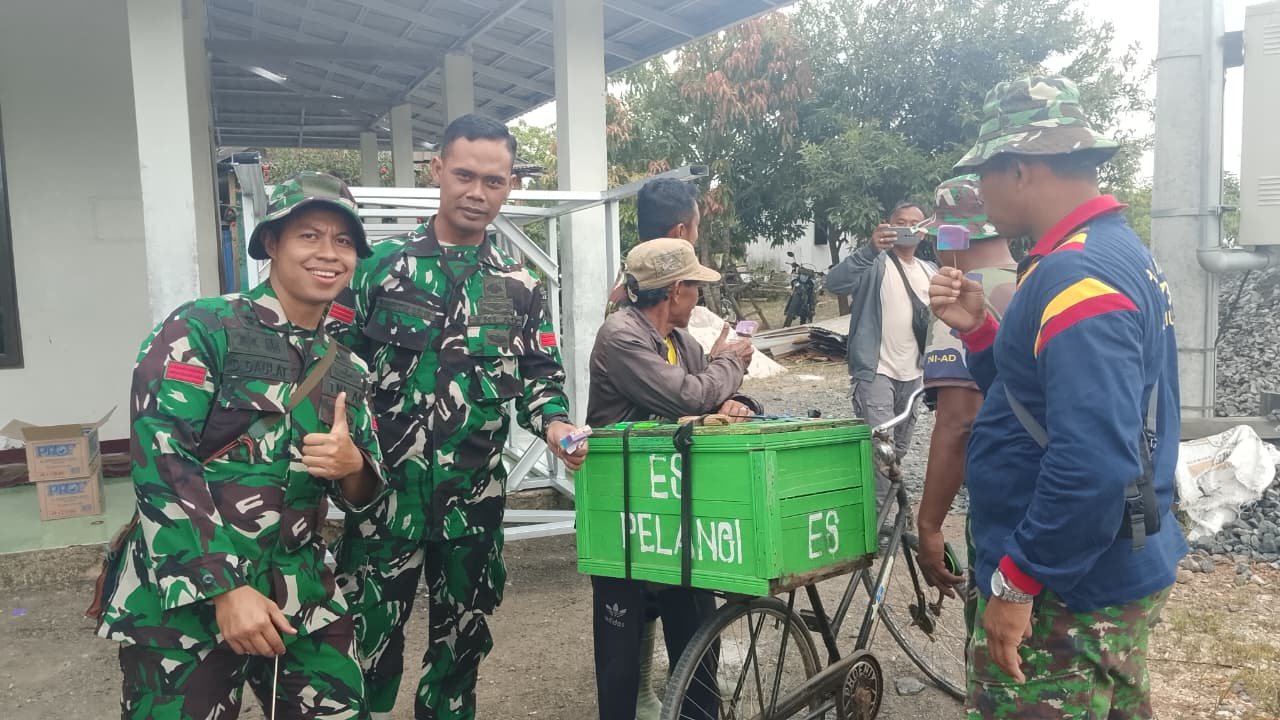 Es Pelangi Satukan Prajurit dan Warga di Desa Tumih