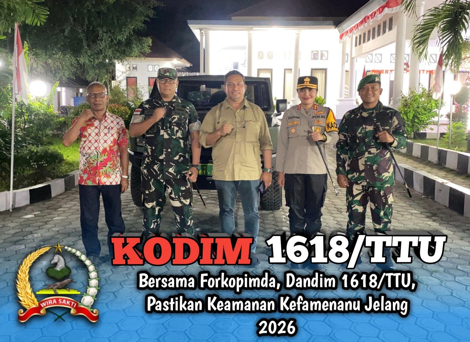 Kefamenanu, Nusa Tenggara Timur – Untuk memastikan keamanan dan ketertiban masyarakat (kamtibmas) menjelang pergantian Tahun Baru 2026, Forkopimda Kabupaten Timor Tengah Utara (TTU) mengadakan patroli bersama di Kota Kefamenanu pada Rabu (31/12/2025). Kegiatan ini dipimpin oleh Bupati TTU, Yosep Falentinus Delasalle Kebo, S.IP., M.A., bersama dengan Komandan Kodim 1618/TTU, Letkol Arm Didit Prasetyo Purwanto, S.E., serta Kapolres TTU, AKBP Eliana Papote, S.I.K., M.M.
