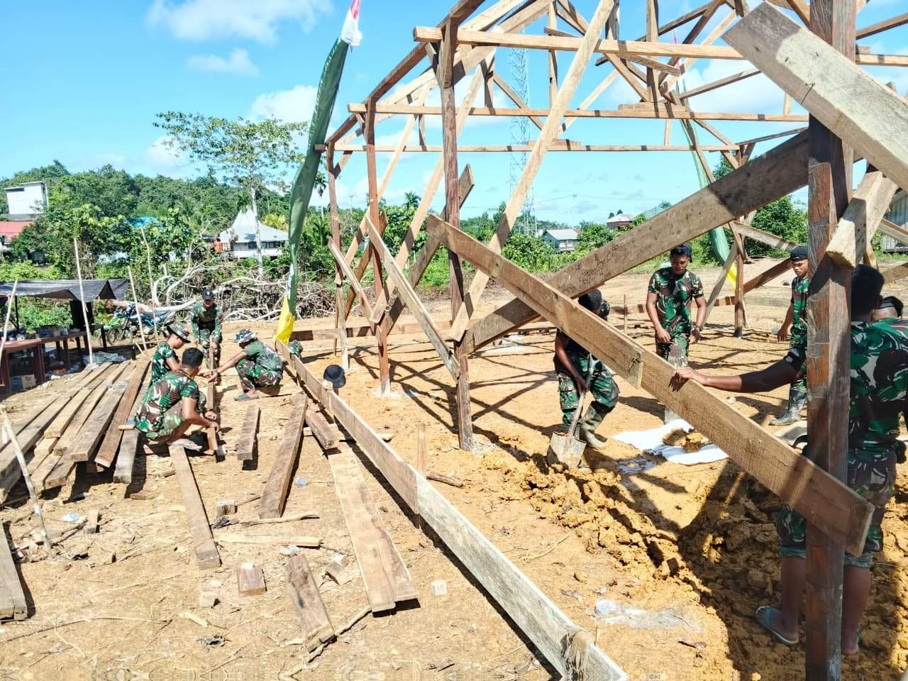 Gotong royong antara prajurit dan warga menjadi kekuatan utama dalam percepatan pengerjaan, mulai dari pengangkutan material, pengecoran, hingga pemasangan dinding bangunan.