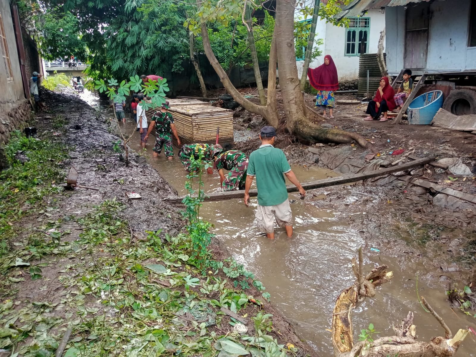 Pembersihan dimulai dengan pengangkatan sampah plastik yang menumpuk di sepanjang aliran sungai. Warga dan anggota Koramil dengan penuh semangat mengumpulkan sampah dan memindahkannya ke dalam karung. Setelah terkumpul, sampah-sampah tersebut diangkut menggunakan truk milik Dinas Lingkungan Hidup (DLH) untuk dibuang ke tempat pembuangan akhir. Selain itu, alang-alang liar yang tumbuh di sekitar sungai juga dibabat untuk memastikan air mengalir dengan lancar, mengurangi potensi genangan yang bisa menyebabkan banjir saat musim hujan.