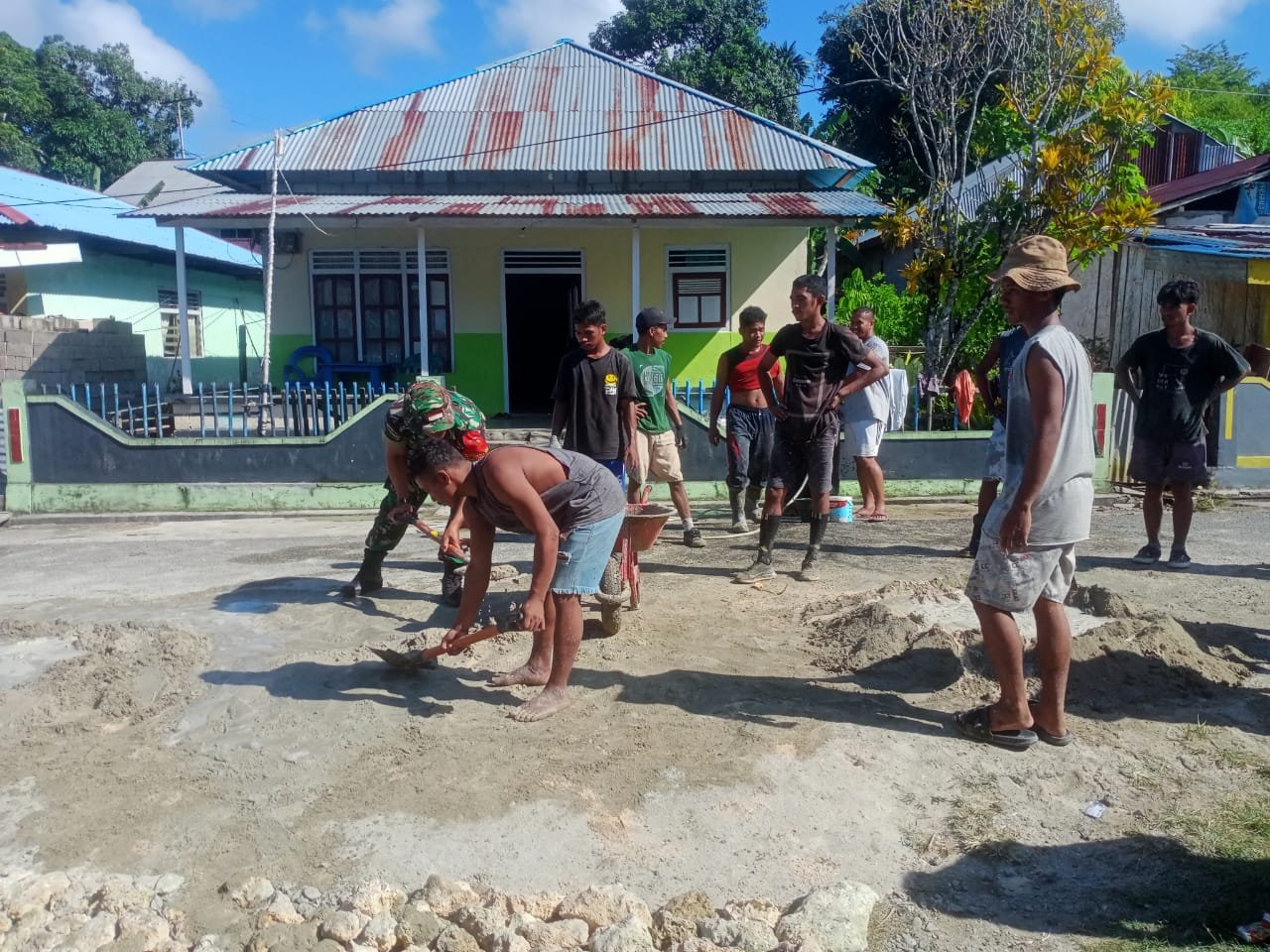 Halmahera Tengah – Dalam upaya meningkatkan infrastruktur desa, Babinsa Sertu Bakri Seri berkolaborasi dengan masyarakat Desa Gemia, Kecamatan Patani Utara, Kabupaten Halmahera Tengah, pada Jumat, 09 Januari 2026. Kegiatan gotong royong tersebut berfokus pada pengecoran jalan setapak yang dinilai krusial bagi akses transportasi warga.