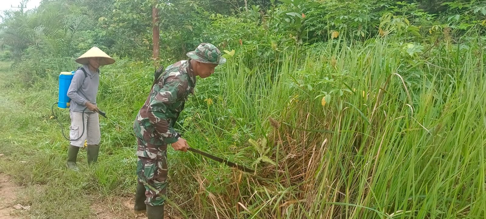 Sukamara — Dalam upaya menjaga kebersihan dan mempererat kebersamaan antara TNI dan masyarakat, Babinsa Natai Kondang Koramil 1014-07/Balai Riam, Sertu Wahyudi, melaksanakan kegiatan gotong royong membersihkan lingkungan Desa Natai Kondang, Kecamatan Permata Kecubung, Kabupaten Sukamara, (3/11/2025).
