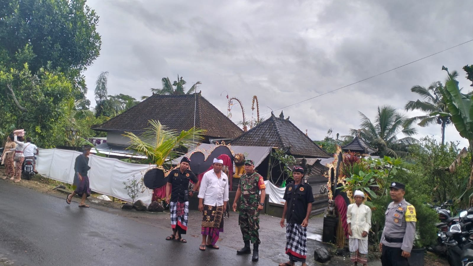 Guna Memastikan Upacara Aman, Babinsa Pantau dan Amankan Upacara Ngenteg Lingih Lan Medem Pedaging di Merajan Pasek Buyut Gelgel