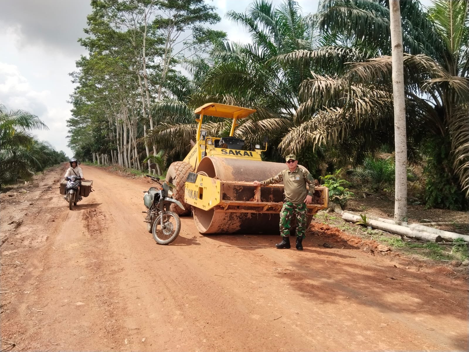 Kapten Inf Panca Agung melakukan kunjungan lapangan untuk memeriksa kondisi jalan yang telah dibangun oleh Satuan Tugas (Satgas) TMMD bekerja sama dengan warga Desa Wonosari, Kecamatan Pulau Rimau, Kabupaten Banyuasin.