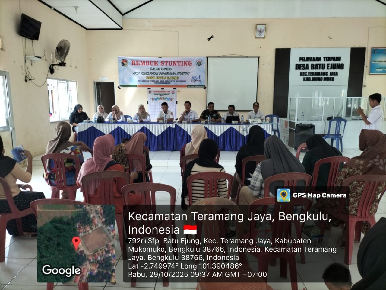 MUKOMUKO – Menghadiri kegiatan Rembuk Stunting, bertempat di Desa Batu Ejung, Kec. Teramang Jaya, Kabupaten Mukomuko, Rabu (29/10/2025).