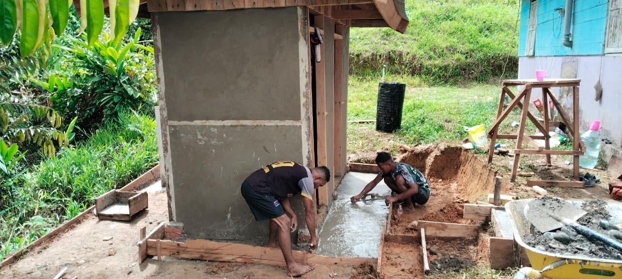Hampir Rampung, Satgas TMMD 126 Kodim 1711/BVD Kebut Pembuatan Rabat MCK 4 di Balai Kampung Waropko