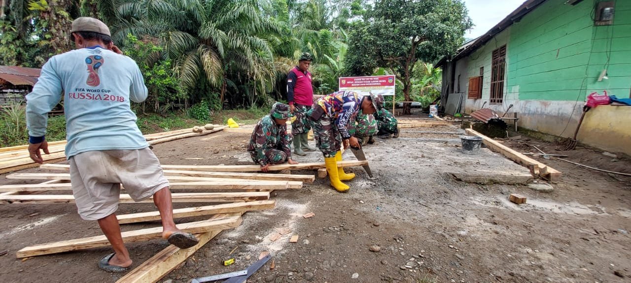 Hari ke-5 TMMD Ke-125 Kodim 0428/Mukomuko, Satgas Mulai Pasang Rangka Rumah RTLH di Desa Sumber Makmur