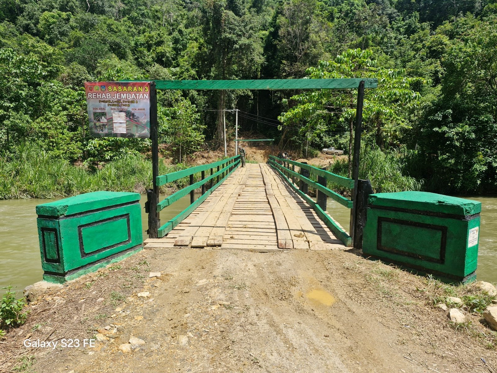 “Jembatan ini dulu hanya berupa titian kayu dan rawan rusak, tapi kini sudah hampir selesai dengan konstruksi yang lebih kuat dan permanen.”