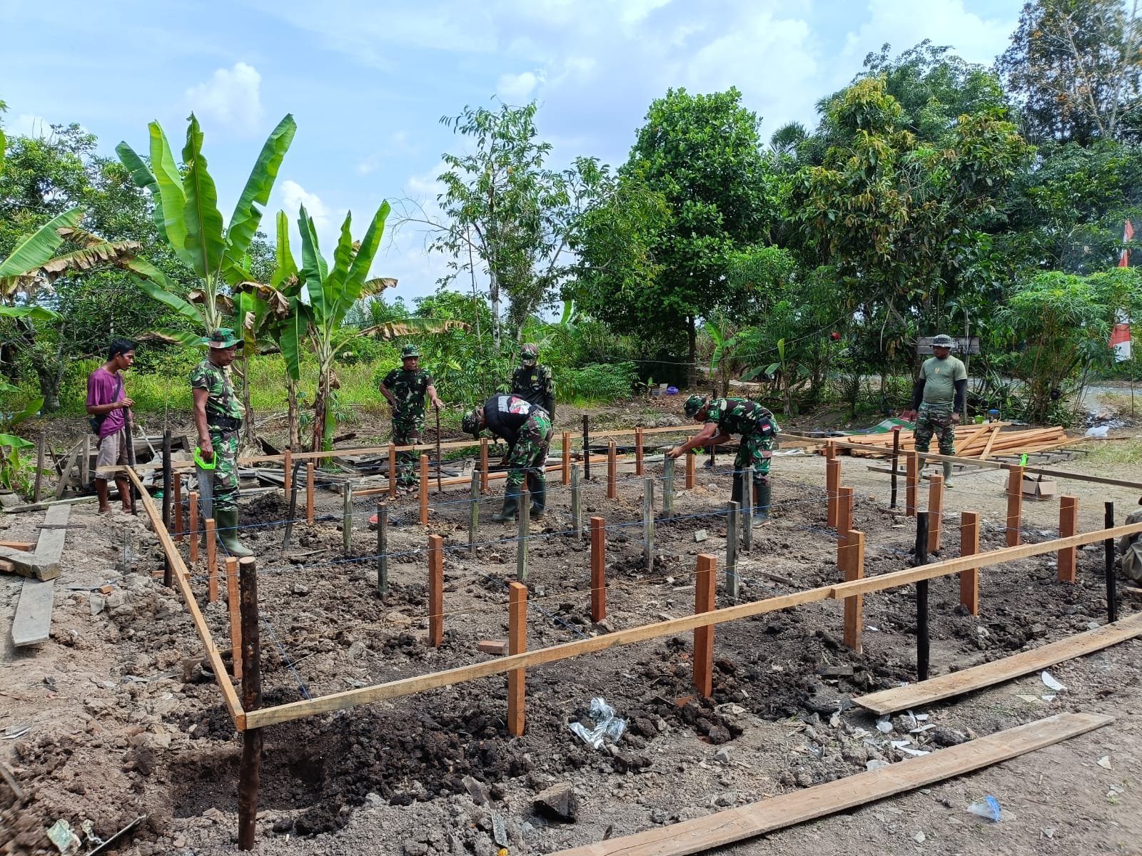 Selain membantu masyarakat memperoleh tempat tinggal yang layak, kegiatan ini juga mempererat kebersamaan antara TNI dan warga, yang bahu-membahu dalam setiap proses pembangunan di Desa Tumih.(1005).
