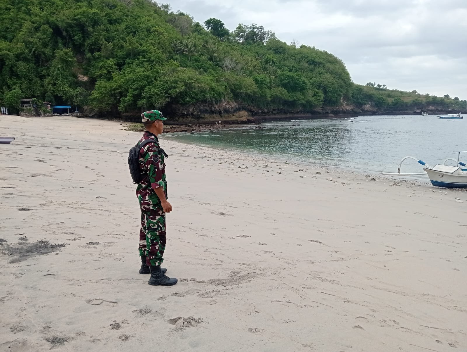Kegiatan patroli ini digelar Sertu Nyoman untuk memastikan situasi, kondisi serta aktifitas di obyek wisata pantai Crystal Bay aman terkendali.