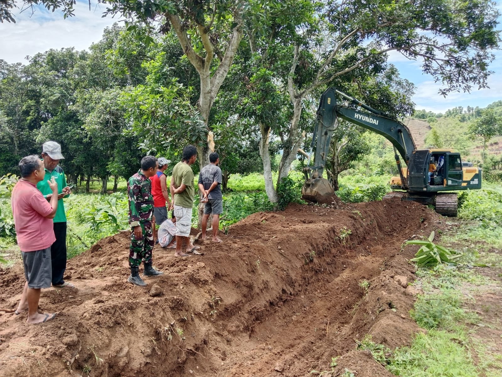Jalan Perbatasan Desa Ntonggu-Teke Terhambat Genangan Air, Babinsa Ntonggu Ajak Warga Gotong Royong