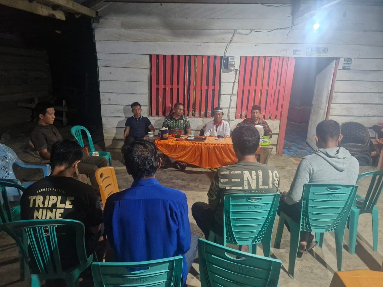 Koordinator Lapangan Sasaran Jembatan, Kapten Inf Sudarto, bersama aparat pemerintah desa dan tokoh masyarakat Tonggauna, menggelar koordinasi lapangan guna memastikan segala hal berjalan lancar dan tertib saat kunjungan tim Wasev Mabesad TNI nanti.