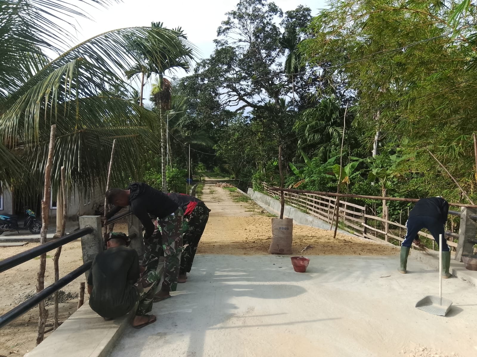 Kendari – Pembangunan jembatan yang merupakan bagian dari program TMMD ke-127 oleh Kodim 1417/Kendari di Kelurahan Sambuli diharapkan memberikan dampak positif bagi masyarakat setempat. Setelah penyelesaian proses konstruksi, personel Satgas kini sedang melaksanakan tahap pengacian untuk menjamin kualitas dan ketahanan jembatan agar aman digunakan dalam jangka panjang.