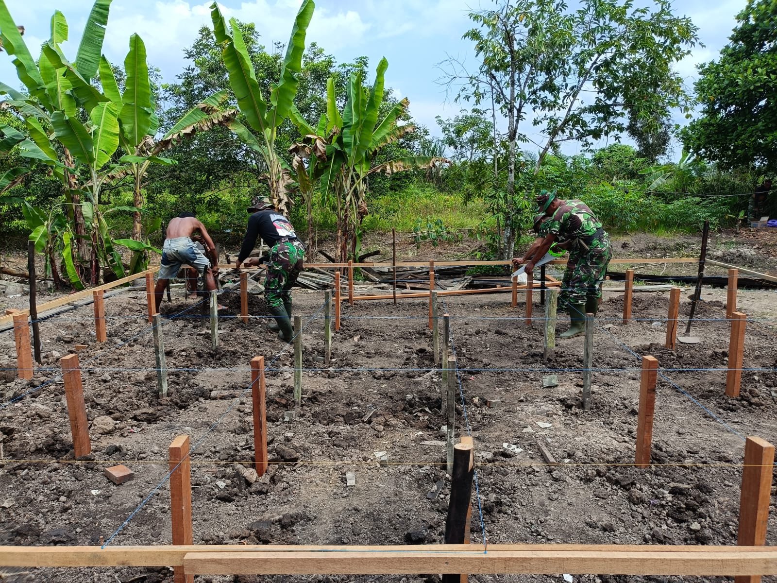 Di bawah terik matahari, para prajurit tanpa lelah melanjutkan pembangunan rumah tidak layak huni (RTLH) milik Kai Salamun. Berdasarkan laporan Peltu Hari Maladi pada Jumat (10/10/2025), progres pembangunan menunjukkan hasil menggembirakan. Pemasangan tongkat telah mencapai 80 persen, sedangkan glagar dan tiang utama masing-masing mencapai 40 persen.