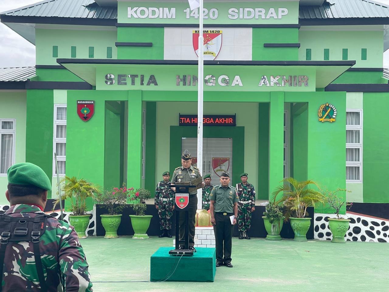 Upacara tersebut dihadiri oleh para Danramil, Pasi Kodim 1420/Sidrap, serta seluruh anggota TNI dan PNS di jajaran Kodim. Kapten Inf Abd Rajab (Danramil 1420-07 Baranti) bertugas sebagai Komandan Upacara Cadangan, sementara Lettu Inf Abdul Muis (Pasi Pers Dim 1420/Sidrap) menjadi Perwira Upacara. Pelaksanaan kegiatan berlangsung lancar dan penuh khidmat.