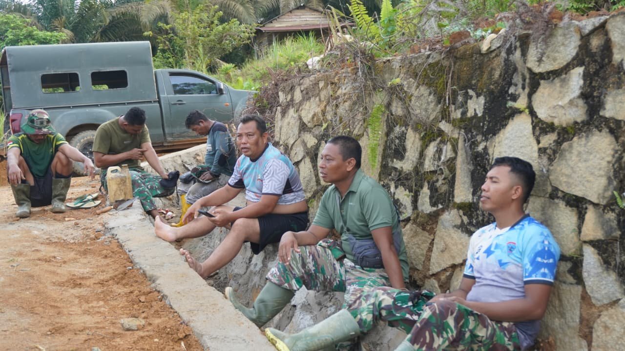 Meskipun pekerjaan fisik di lapangan cukup melelahkan, anggota Satgas tetap aktif menjaga komunikasi dengan masyarakat. Interaksi yang sederhana ini berfungsi untuk memperkuat ikatan emosional antara TNI dan warga.