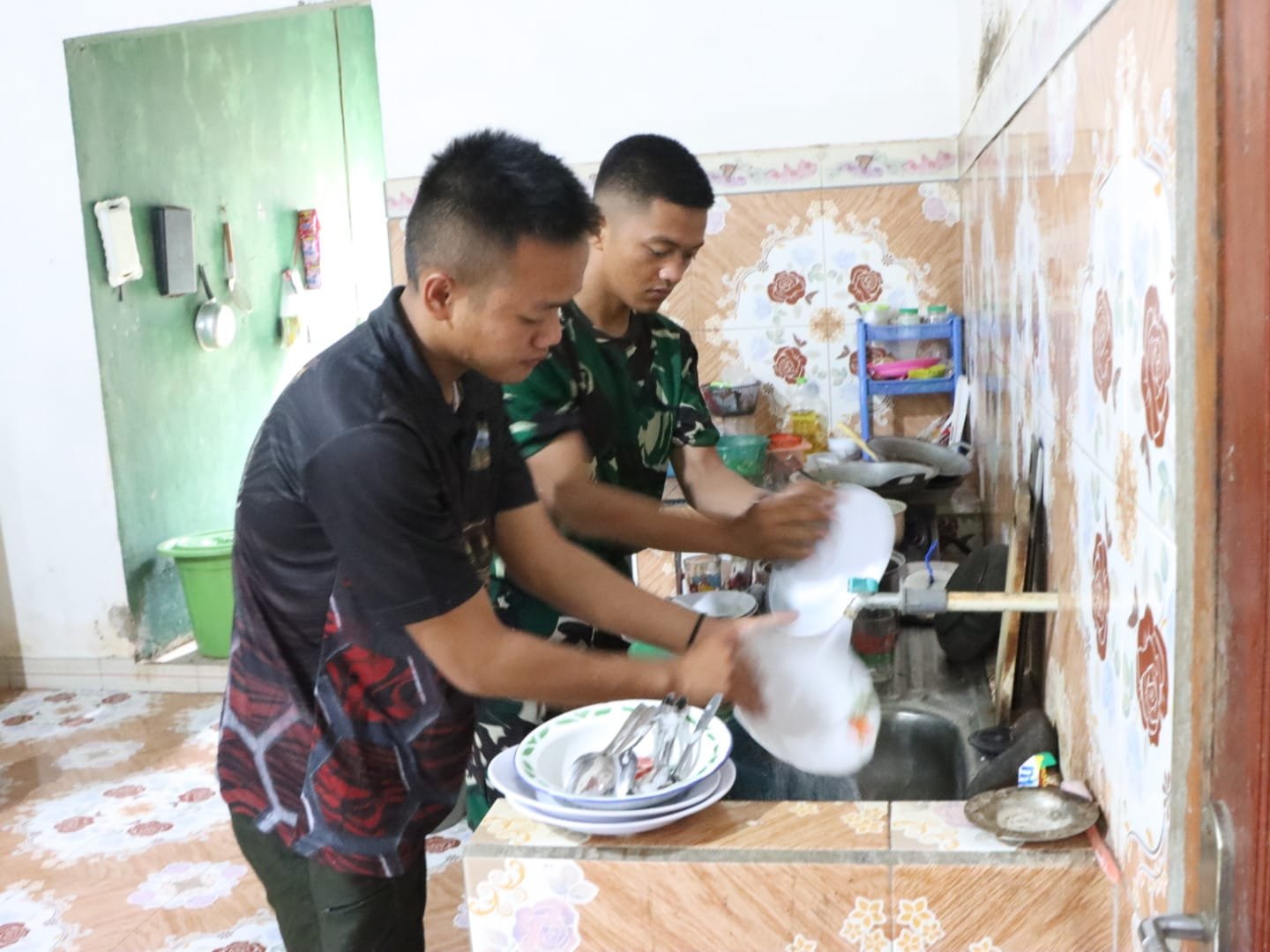 Momen mencuci piring ini pun menjadi kesempatan untuk menjalin komunikasi santai antara anggota Satgas dan keluarga tuan rumah. Dalam suasana yang hangat, berbagai cerita dan canda tawa terjalin, yang pada akhirnya semakin mempererat hubungan di antara mereka.